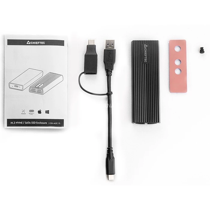 Das Chieftec CEB-M2C-TL ist ein externes SSD-Gehäuse für den Einbau von M.2 SSDs, sowohl mit internen NVME als auch SATA Anschüssen (unterstützt werden M & B+M Key), und bietet schnelle Datentransferraten bis zu 10 Gbps. Das qualitativ hochwertige, schwarze Aluminiumgehäuse bietet eine einfache werkzeuglose Installation und eine gute Wärmeableitung und genügend Schutz für die verbaute SSD.