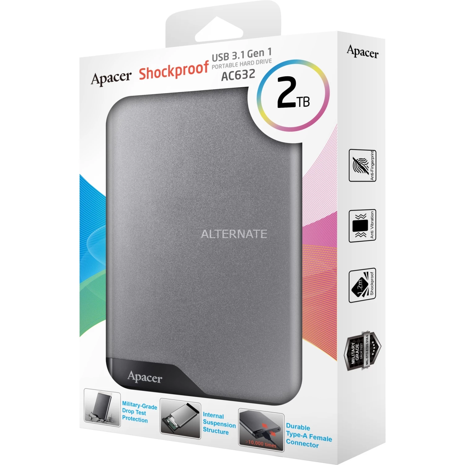 Externe Festplatten Apacer AC632 2 TB, Externe Festplatte (grau/schwarz, USB 3.2 Gen 1 (5 Gbit/s))