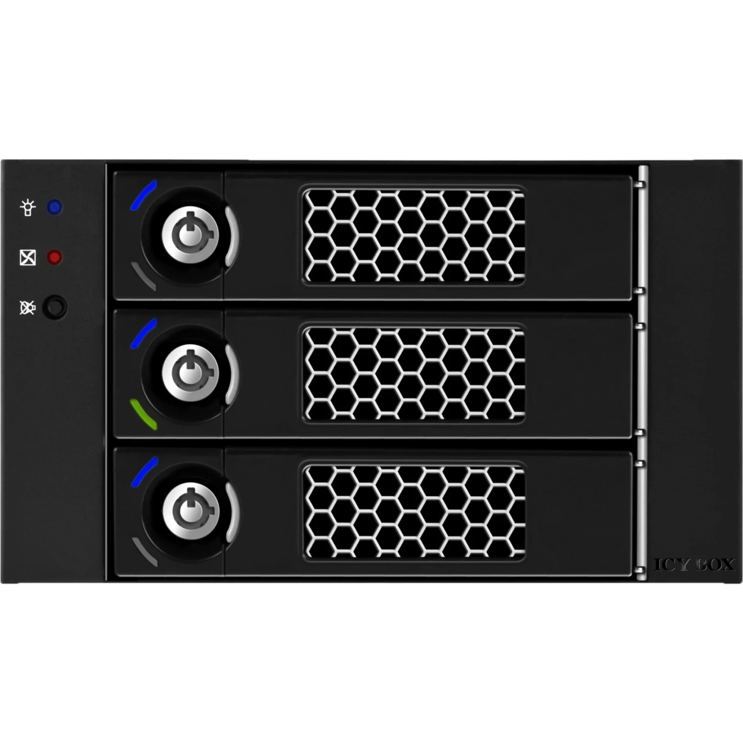 Die SATA-Backplane ICY BOX IB-553SSK bietet einen schnellen Festplatteneinbau und -wechsel ohne Träger. Dieser Festplattenwechselrahmen hat ein effizientes Kühlsystem mit einem 80-mm-Lüfter an der Rückseite.