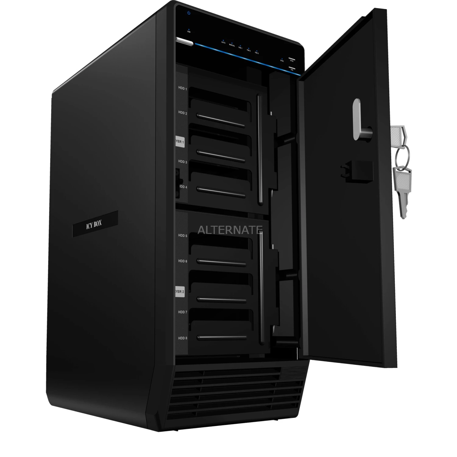 Dieses externe Speichergehäuse ICY BOX IB-3780-C31 bietet Platz für bis zu acht 2,5-Zoll- oder 3,5-Zoll-Laufwerke. Ein robuster Aluminiumkorpus ermöglicht eine effiziente Wärmeableitung, und die temperaturgeregelten Lüfter an der Rückseite sorgen dafür, dass die Laufwerke während der langen Betriebsstunden kühl bleiben. Zusätzlich zum verbesserten Design bietet das IB-3780-C31 den Vorteil der 2,5″ und 3,5″ Laufwerkunterstützung. Dies macht das Gerät zu einem idealen Kandidaten für Benutzer, die nach der maximalen Kapazität an direkt angeschlossenem Speicherplatz suchen, da herkömmliche Festplatten immer noch eine wesentlich größere Datenmenge aufnehmen können als die derzeit größten SSD-Laufwerke. Wenn man jedoch die maximale Leistung bei der Datenübertragung unbedingt benötigen, kann man, dank der