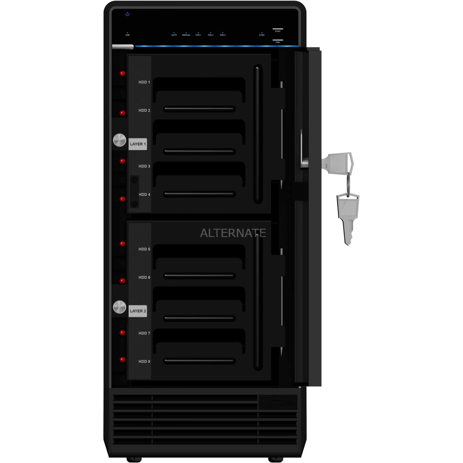 | Anmerkungen | Bietet, Platz, für, bis, zu, acht, 2, 5", oder, 3, 5", SATA, III, Laufwerke, mit, einer, Übertragungsrate, von, bis, zu, 6, Gbit/s, entnehmbare, Laufwerksträger, für, die, einfache, Installation, von, 2, 5", Festplatten, und, SSD‘s, unterstützt, den, SINGLE, Modus, –, jedes, Laufwerk, wird, separat, angesteuert, Energiesparend, durch, synchronisierten, Standby, Modus, zwei, temperaturgesteuerter, Lüfter, für, optimale, Kühlung, und, Laufruhe, (2x, 80-mm-Lüfter), Energiesparmodus, über, Synchronisationsschalter, de-/aktivierbar |