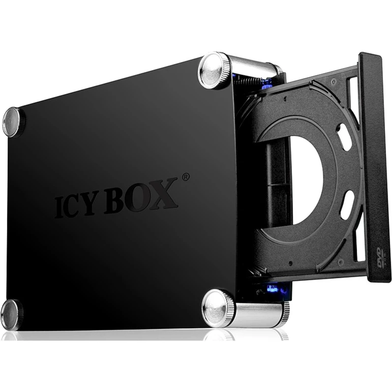 In das Laufwerksgehäuse ICY BOX IB-550StU3S kann entweder ein optisches 5,25″-Laufwerk oder eine 3,5″-SATA-Festplatte montiert werden. Es kann als externes USB-3.2- oder eSATA-Gerät genutzt werden. Die Seiten des Gehäuses haben eine blaue LED-Beleuchtung, welche beim Zugriff auf den Datenträger blinkt. Die Installation des Laufwerks ist einfach zu Handhaben. Dazu ist das ICY BOX IB-550StU3S leise im Betrieb dank lüfterlosem Design.
