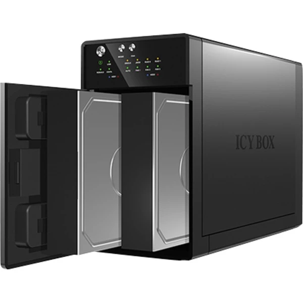 Das ICY BOX IB-RD3620SU3 ist ein externes 2-fach RAID-Gehäuse für zwei 3,5″ SATA I/II/III HDDs. Durch den temperaturgeregelten Lüfter ist das Gehäuse leise im Betrieb und energiesparend dank des synchronisierten Standby Modus. Die Handhabung gestaltet sich einfach durch die trägerlose Festplatteninstallation.