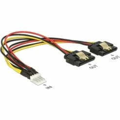 Netzteilkabel DeLOCK Floppy Stecker > 2x SATA 15Pin Buchse, Y-Kabel (schwarz/rot, 20cm)
