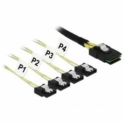 SAS Kabel DeLOCK Adapterkabel Mini SAS HD SFF-8643 > 4x SATA 7Pin (schwarz, 1 Meter, Mit Sideband)